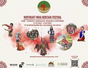September 19–20, 2025, in Columbus, Ohio. This two-day event will showcase the rich and diverse cultural traditions of Northeast India, featuring traditional dance, music, handloom crafts, regional cuisine, lectures, workshops, and community dialogue. Representing the “eight sisters” of India—Arunachal Pradesh, Assam, Manipur, Meghalaya, Mizoram, Nagaland, Sikkim, and Tripura—this is the first event of its kind in North America.